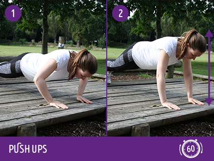 - PUSH-UPS: There's 2 ways of doing these, and it's totally up to you. If you're feeling strong, lie face down on the floor, ground your toes and place your hands firmly on the ground. Push your whole body up, and lower - repeat. If you want to try a different way, instead of grounding your toes with your body straight, ground your knees instead with your feet in the air, lower your body and repeat.