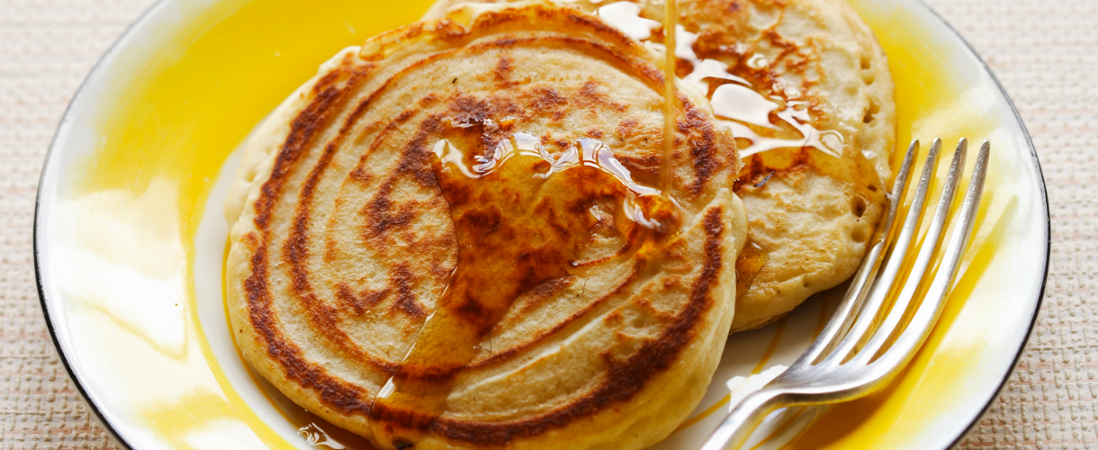 1)Melt half the butter in a small pan over a low heat, then put to one side 2)Put the melted butter, flour, baking powder, eggs, sugar and milk in a large mixing bowl and whisk with an electric hand whisk until smooth. 3)Add the Del Monte® Banana and mash into the batter. 4)Melt the remaining butter in a large non-stick frying pan over a medium heat. Wipe around the base of the pan with kitchen paper so that you minimise the fat in the pan. 5)Drop four large spoonfuls of the pancake mixture into the frying pan, spacing well apart. Cook for two minutes on each side until golden brown. 6)Transfer to a plate and keep warm while you cook the remaining pancakes in exactly the same way. 7)Serve with plenty of maple syrup.